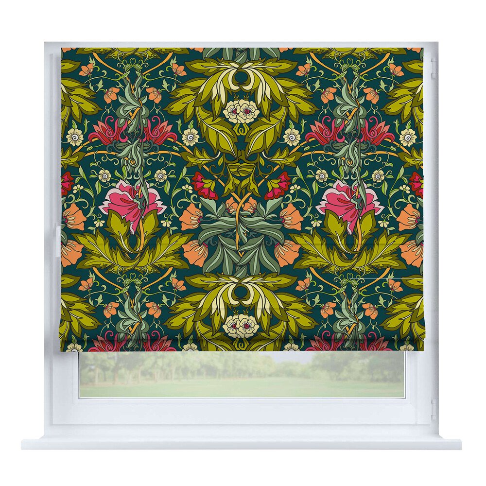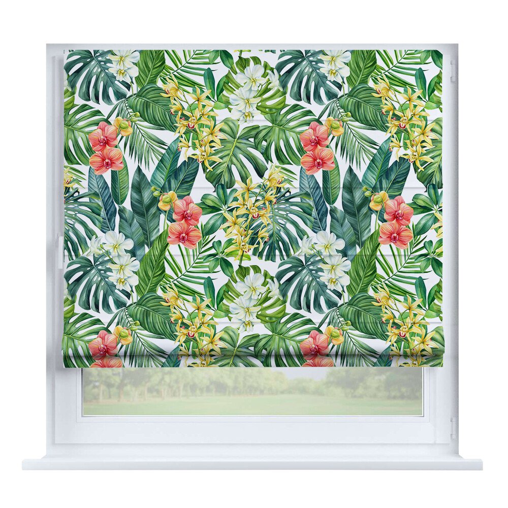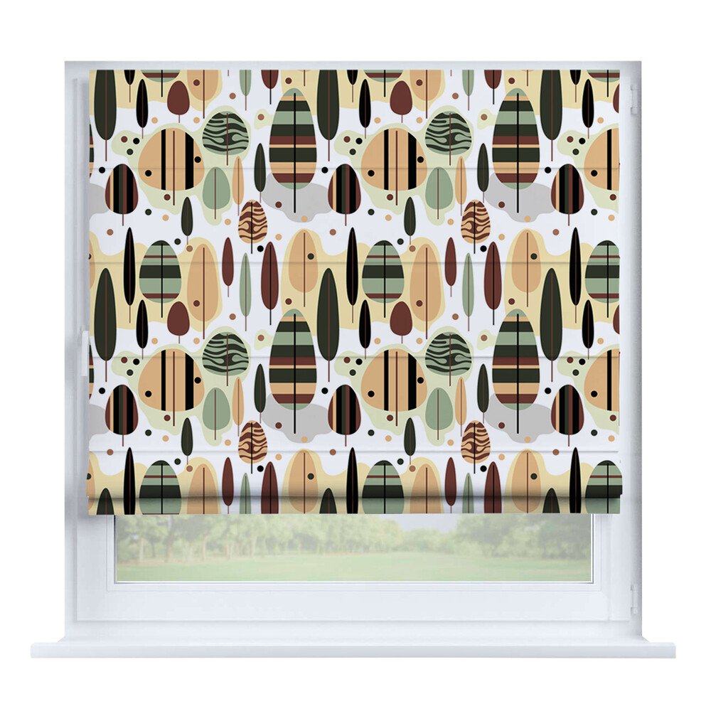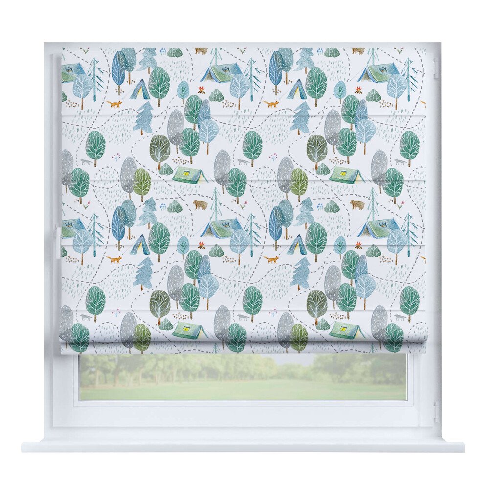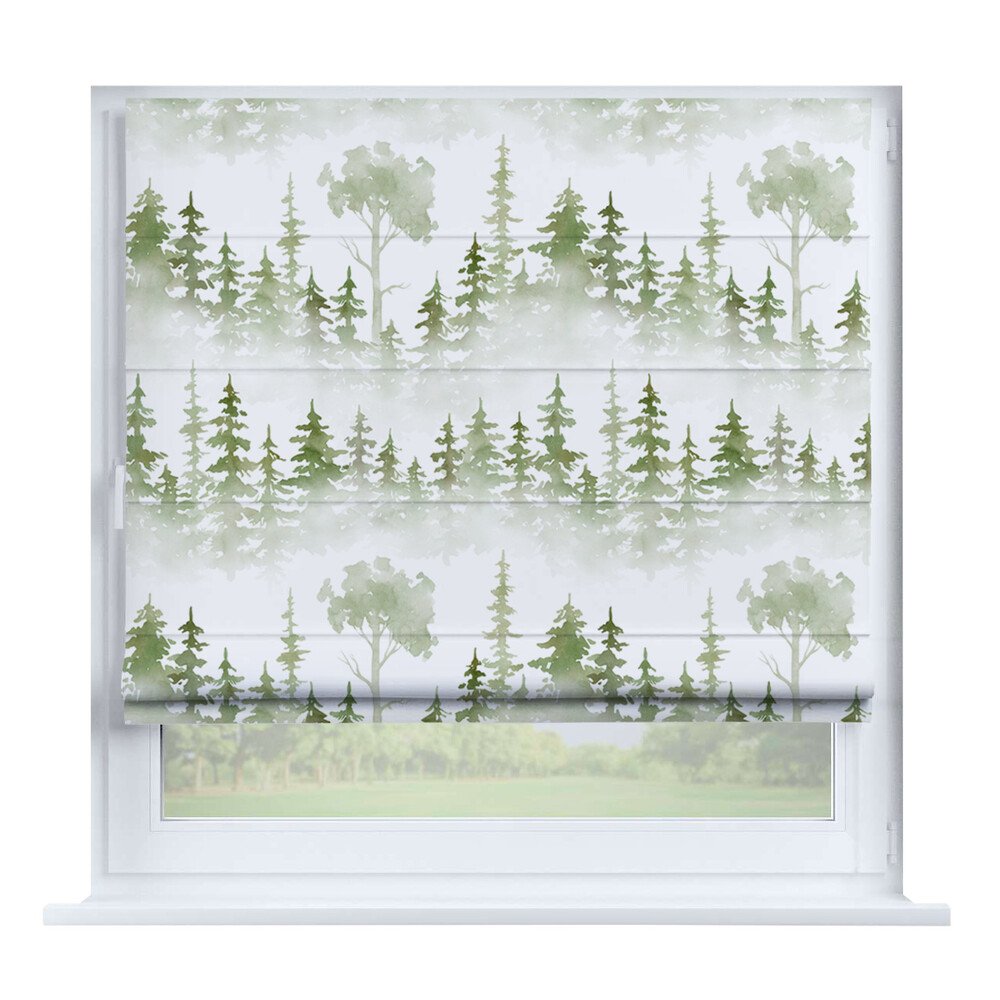 Римская штора для проёма «Лесистая местность», карниз верёвочный