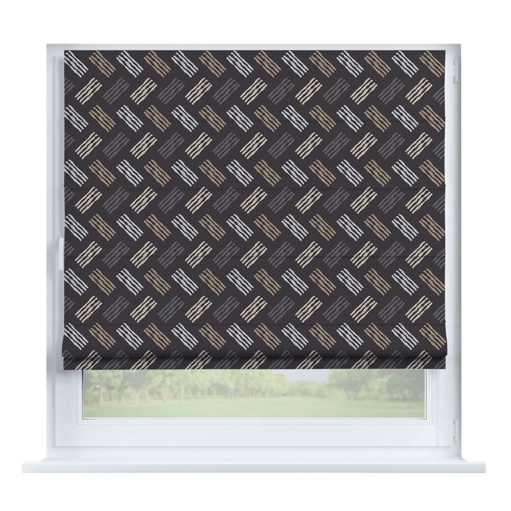 Римская штора для проёма рогожка димаут тёмно-серый, карниз верёвочный